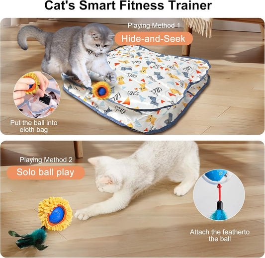 Interactive Cat Toys, Fast Rolling Ball in Play Mat, Automatic Motion Activated Moving Ball Hide and Seek Game for Indoor Exercise