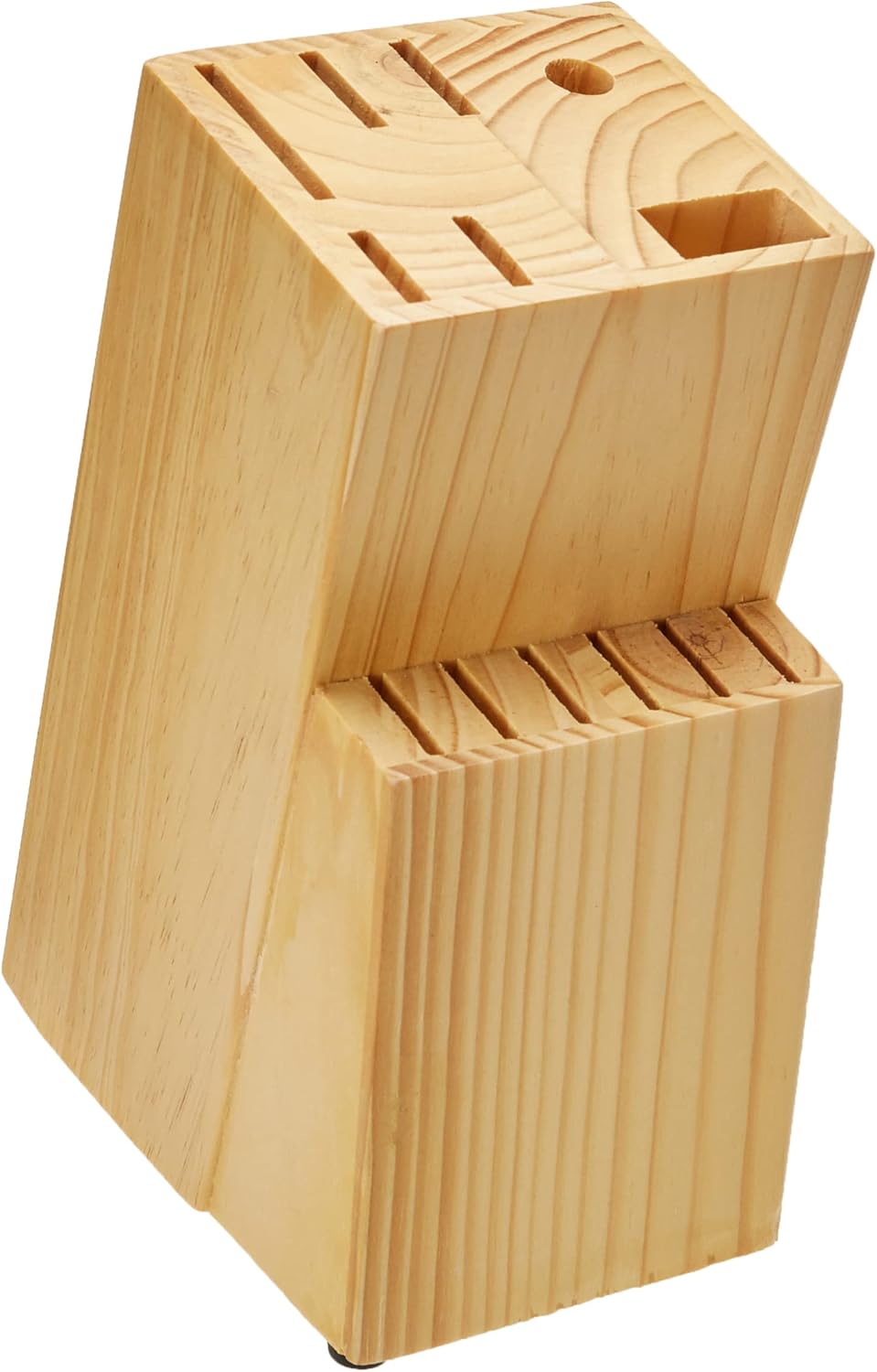 Amazon Basics 14-Piece High-Carbon Stainless Steel Kitchen Knife Set with Sharpener and Pine Wood Block, Black