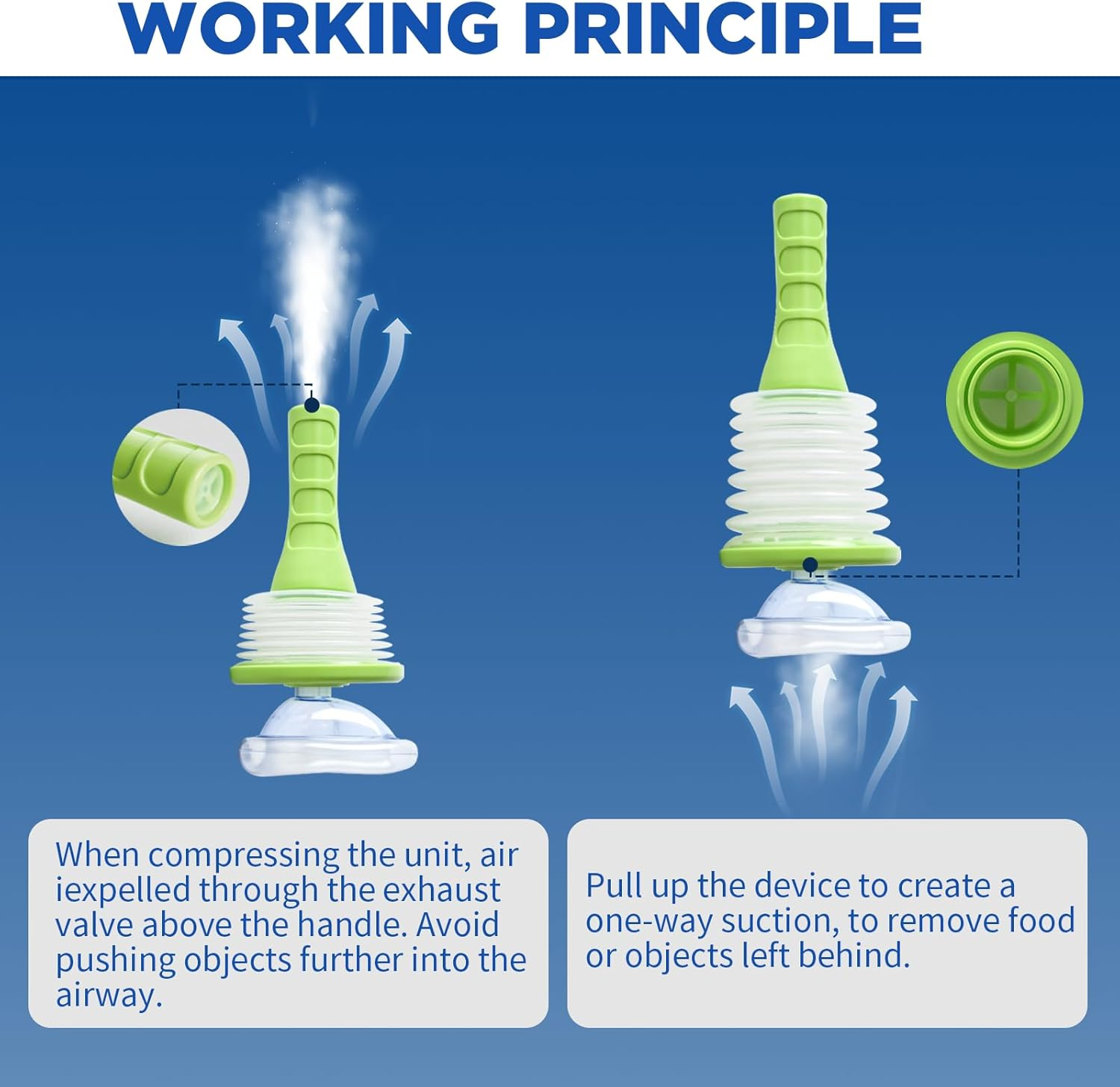 - Choking Suction Devices are small, lightweight and easy to use - simple enough that you can use them on yourself in a choking emergency. They can be carried in a backpack, glove box or first aid kit for home, school, travel and outdoors.