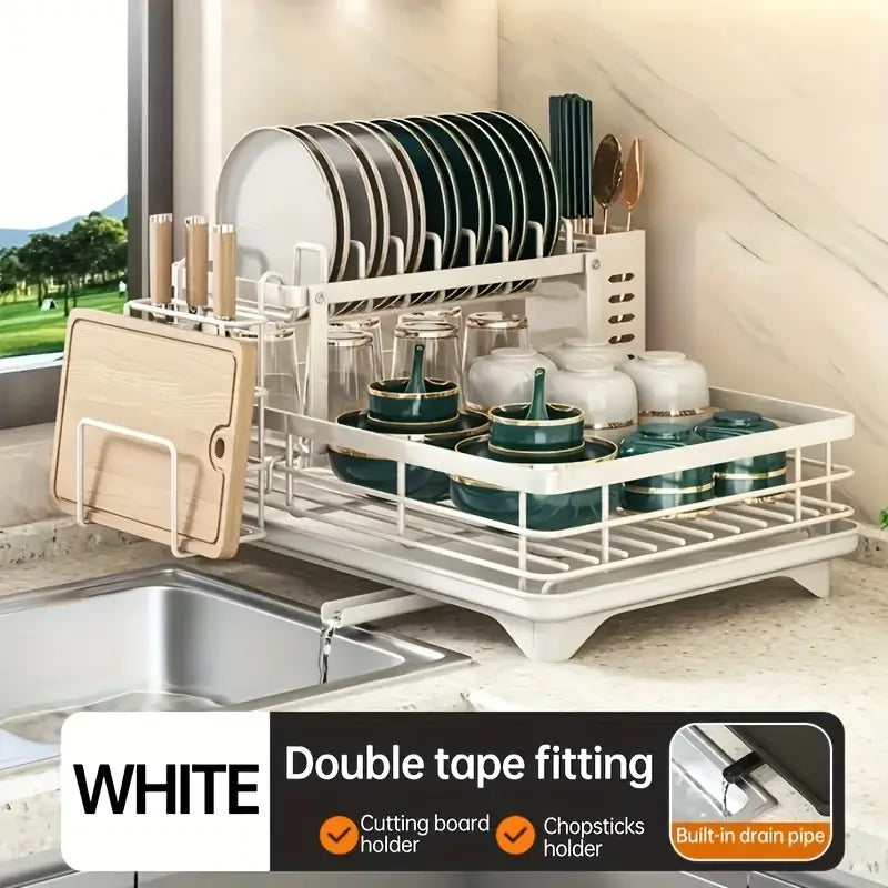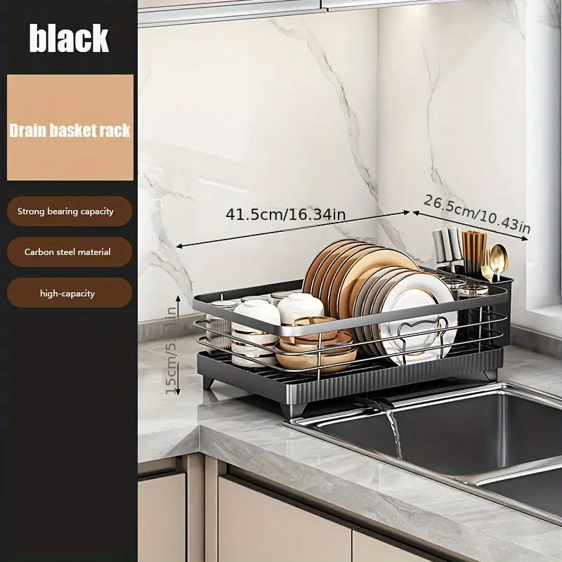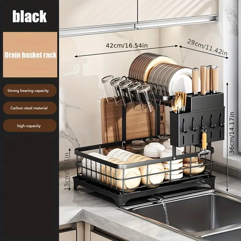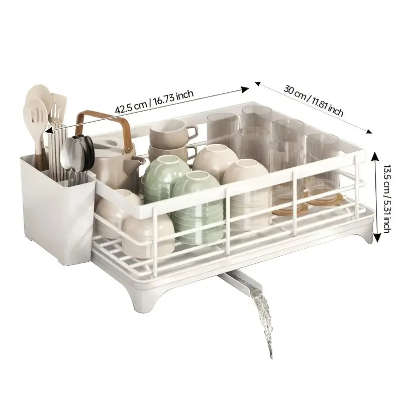 with 360° drainage function, utensil drying rack, utensil drainage tray with utensil rack and 4 cup holders, utensil drainage rack above the sink
