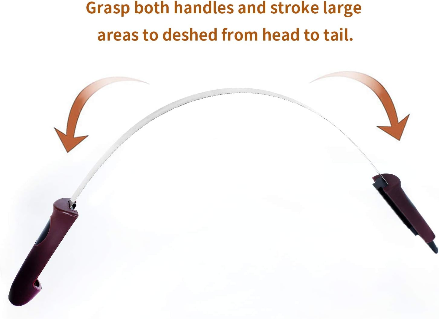 - TWO SHEDDING WAYS-Hold the handles apart to cover large areas at a time, or hold them together to shed smaller regions. This shedding blade is suitable for all kinds of dogs and cats. Also good for large animals, such as the horse.