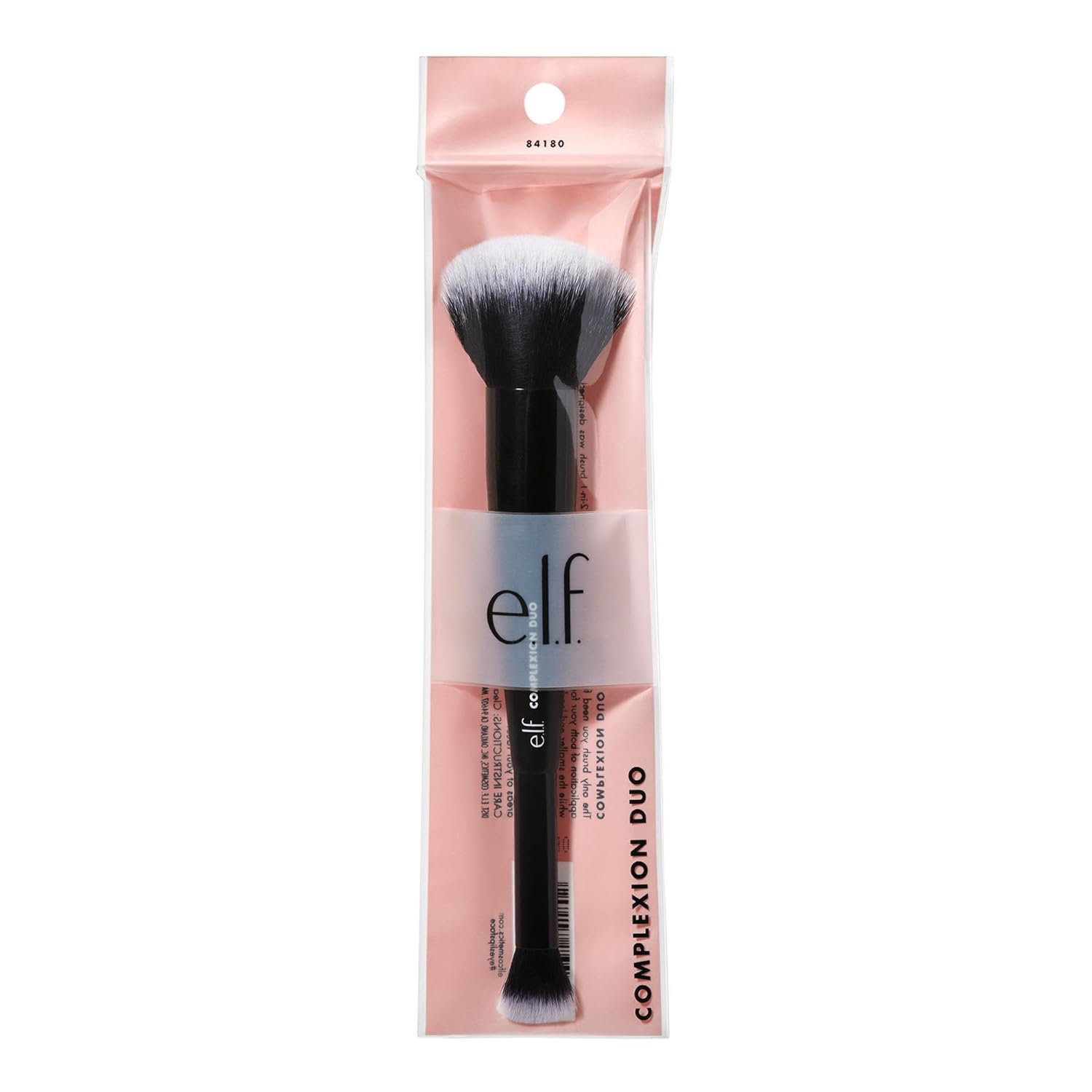 e.l.f. Complexion Duo Makeup Brush, a makeup brush for applying foundation and concealer to create an airbrushed finish, with vegan and non-irritating bristles.