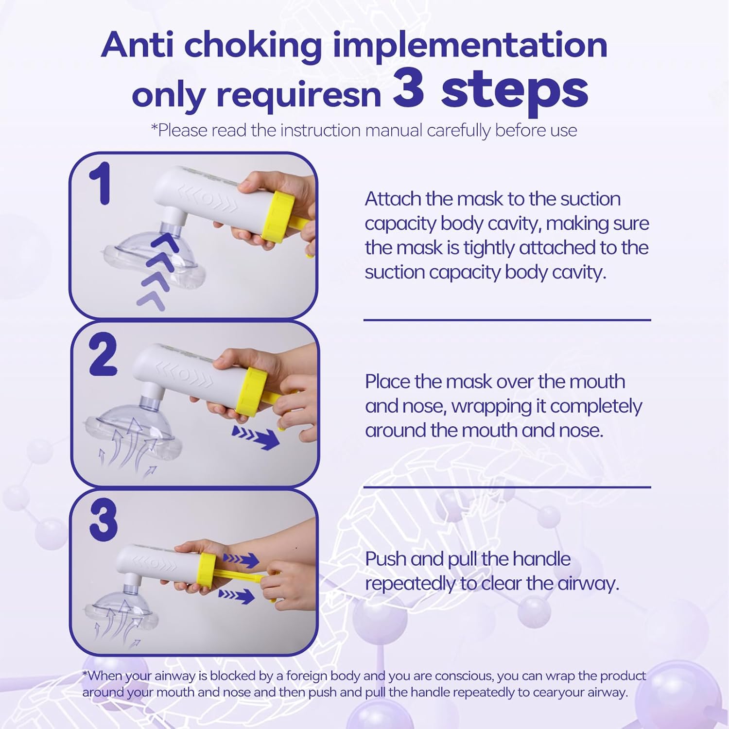 Jointown FSA HSA Choking Rescue for Children and Adults, Portable Airway Suction Device, Anti-choking Device, First Aid Home Kit for Children and Adults, Detachable Suction Device with Masks in Three Sizes