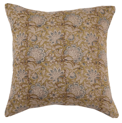 Beautifully hand block-printed pillow on heavy linen fabric.