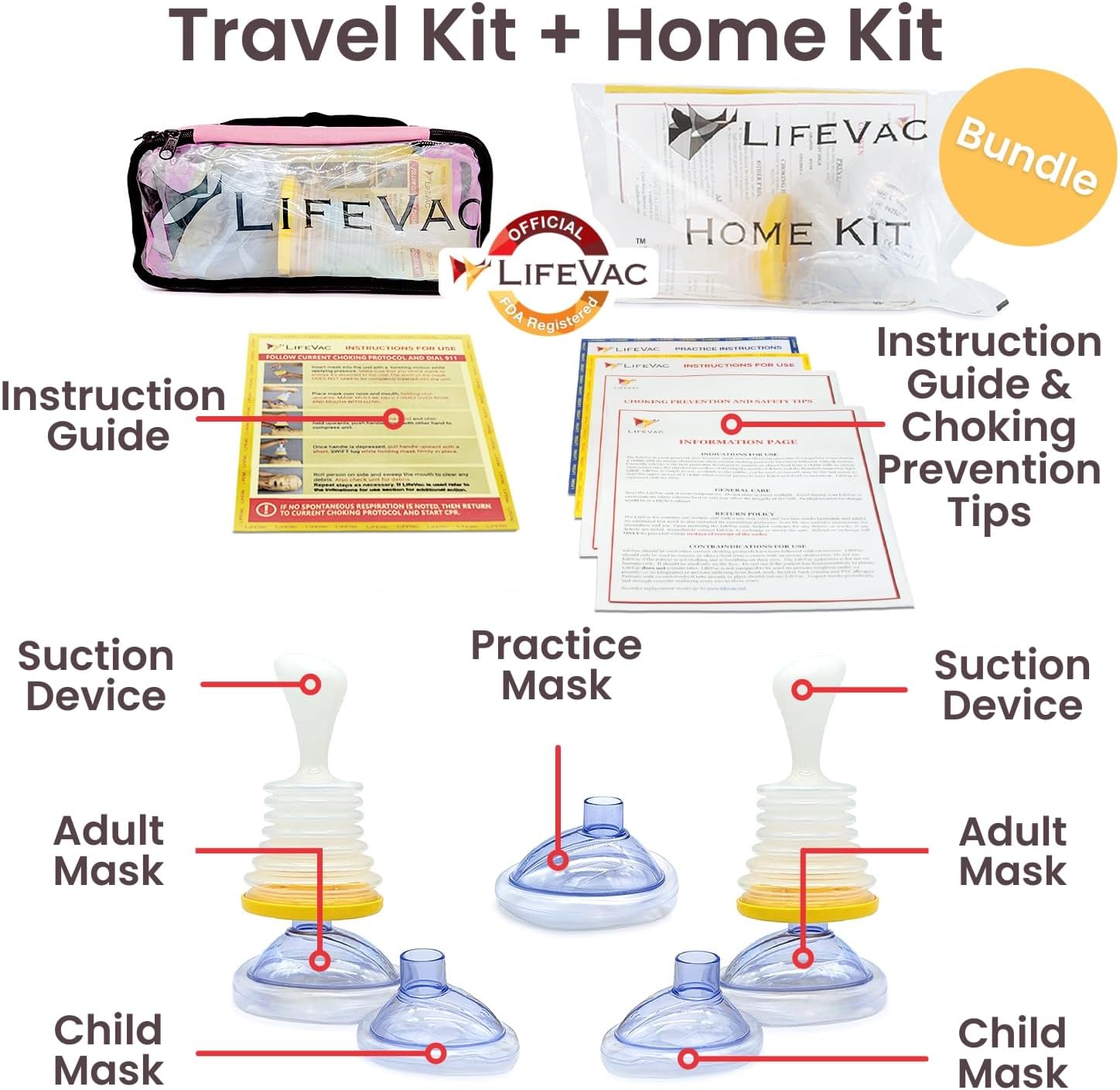 LifeVac Home and Pink Travel Kit Combo - Portable Suction Rescue Device, First Aid Kit for Children and Adults, Portable Airway Suction Device Suitable for Both Children and Adults