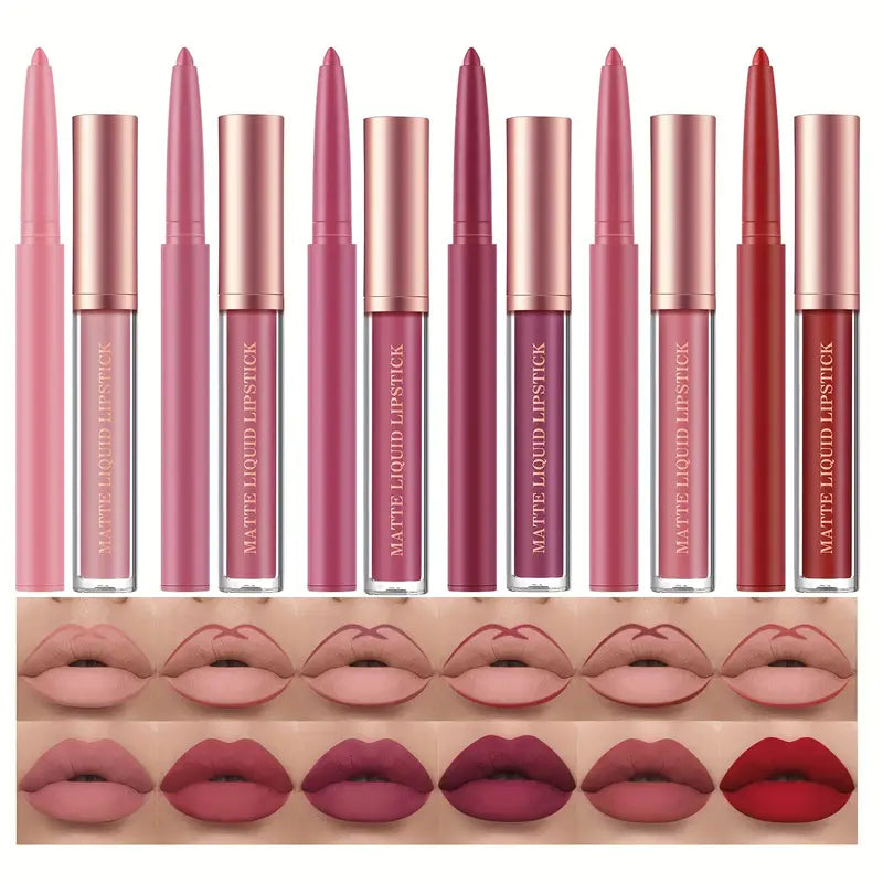 Waterproof Long-Wear Matte Liquid Lipstick and Lip Liner Set