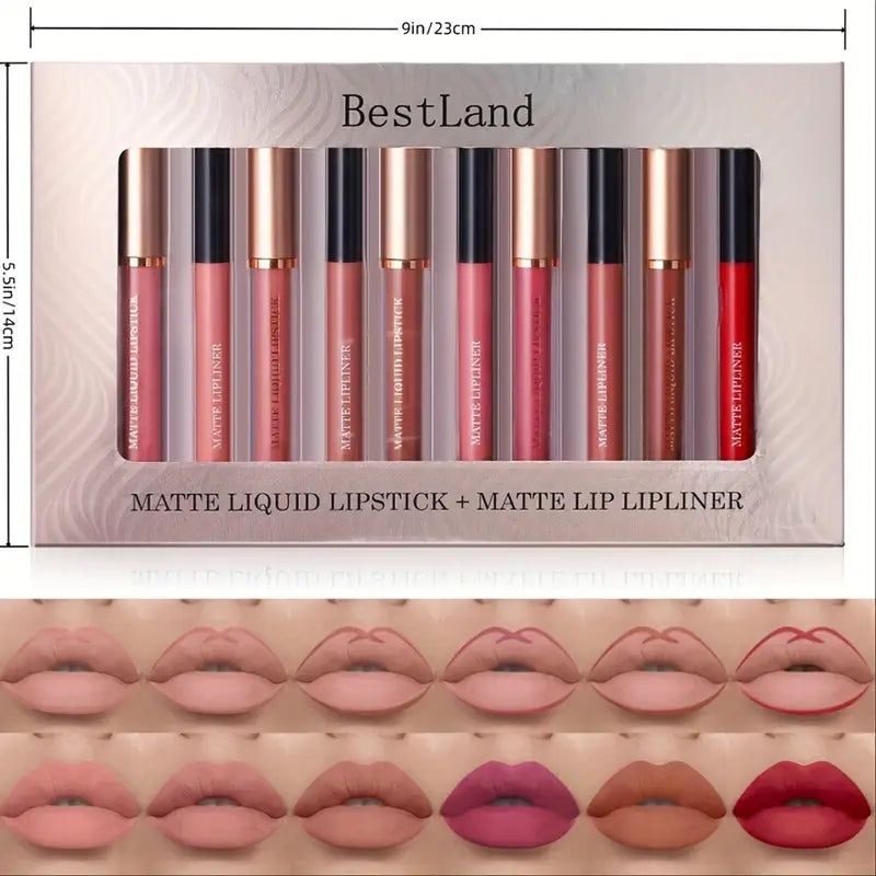 12-Piece Waterproof Long-Wear Matte Liquid Lipstick and Lip Liner Set, One-Step Lip Makeup for All Skin Types, Nude Lip Stain Gift Set
